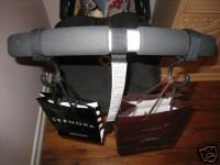 These hooks can be attached to any stroller to hold shopping bags or a diaper bag. They can also be attached to a wheelchair to carry bags. They are black and brand new in package.