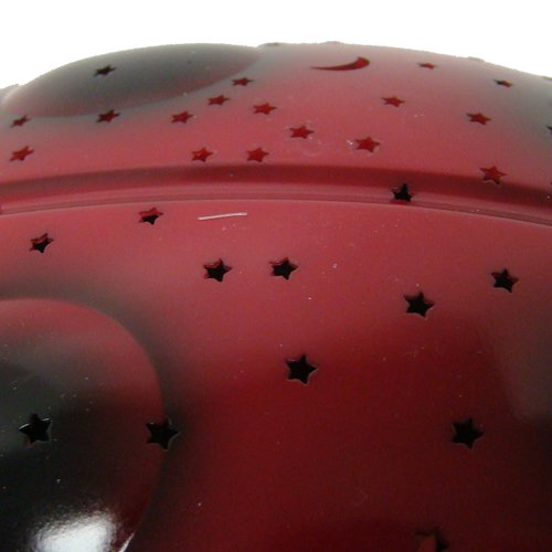 Bought this for my 4 yr old for CHRISTmas b/c she is afraid of the dark and to sleep in her room. She absolutely LOVES this light. It changes colors from red, white, or green. It displays many stars and a moon on the ceiling. Very durable as well. It took a fall off the top bunkbed her first night, and stopped a beat. It is very bright, but not enough to keep your child awake at night. Would highly recommend this for all children who are scared of the dark or needs a nite lite. I am going to buy one for my 18 month old as well.