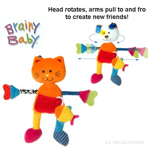 Rotate the head and pull the arms to form Kitty or Doggy. Each piece includes special activity cards with suggestions for parent/child/toy interaction. Extras include rings, squeaker, button and bright colors to capture the imagination.