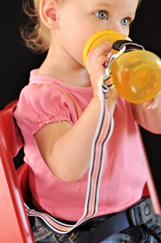 These are such life savers when out and about! I got 2- one for the sippy and one for the snack. Sometimes one is for a toy. Too hard for my 15 month old to get off (long bit of velcro!) and cute! Plus you can adjust the size (length) for your stroller/highchair/purse/grocery cart/etc. Highly recommend this!