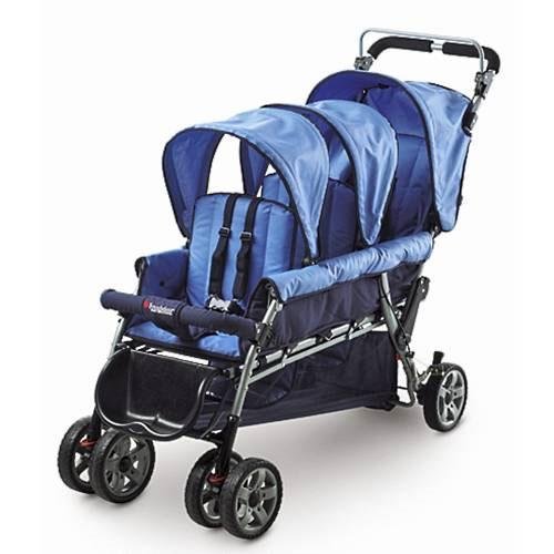 Foundations strollers are designed for the ultimate in safety, ease of use, durability, and value. Every stroller features comfortable seating with independent recline positions, individual easy-to-use harnesses for safety, and canopies to block sun or foul weather. Caregiver will appreciate the easy to clean heavy duty fabric, as well as the extra large storage baskets. All strollers fold easily and compactly for storage when not in use. Constructed of heavy duty tubing for years of reliable use. All Foundations? strollers feature our innovative braking systems. The SafeBrake system engages when the caregiver releases the handle eliminating risk of a runaway stroller, and an additional foot activated brake secures the stroller when parked. The Trio Tandem stroller offers in-line stadium seating to maximize child visibility, enable interaction with their environment, and ease of maneuverability in narrow spaces.