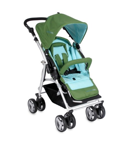 - Suitable for infancy and up with standard infant headrests and shoulder pads, infant seat adapter bar and safety belt, weather shield, cup holder, bumper bar and oversized canopy for maximum sun coverage- Reversible handle with 7" Independent swiveling front and rear wheels with inline locking option so baby can face you or the world