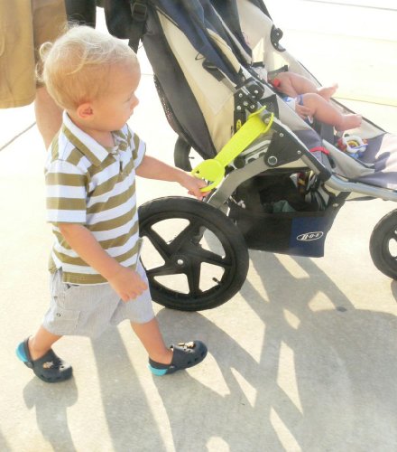 a simple, fun way for kids to walk comfortably next to a stroller.