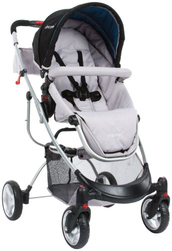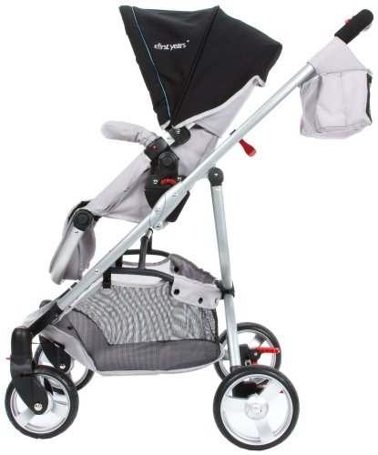 The First Years Indigo Stroller is a durable modular Euro styled frame rated for use to 50 pounds. It also offers an easy release reversible seat with a point harness for rear or forward facing use.