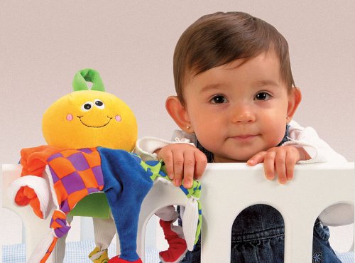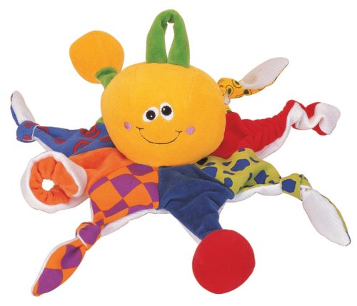 Intrigue your curious baby with the different shapes, colors and textures of this loveable stuffed toy. Octopi's legs are made of different materials for rich tactile stimulation. Your little one can take this cuddly creature anywhere -- it can be fixed on a baby cot, stroller or even worn as a rattling baby wristband. Machine washable.