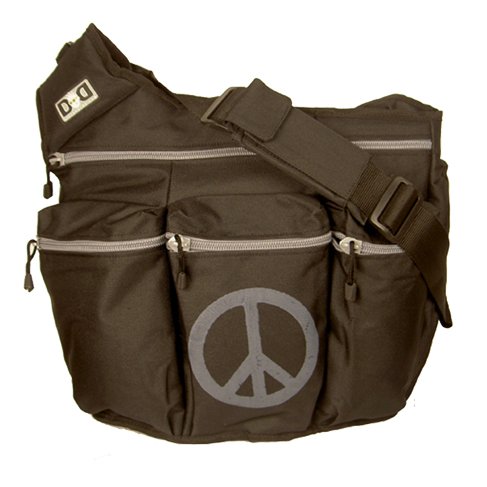 Buy Diaper Dude Black with Peace Sign Designer Diaper Bag for Dad plus Free Stroller Strap Now